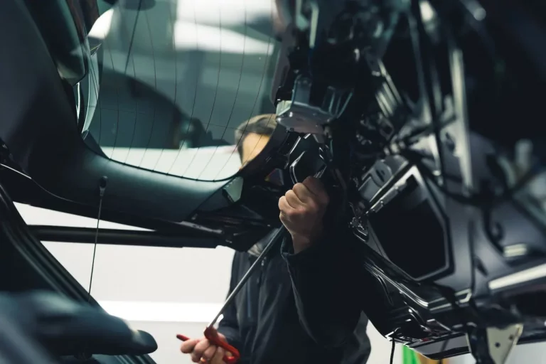 Des techniciens spécialisés dans le démontage des éléments (pavillon de toit, garniture de porte, phare, etc…).